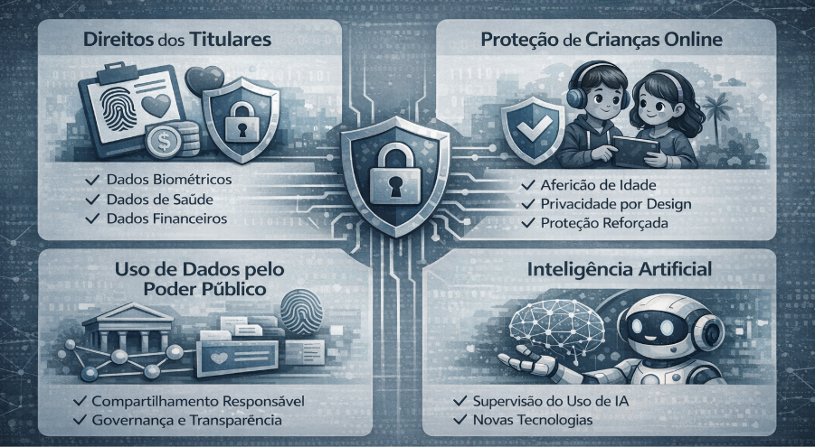 Em 2025, diversas propostas de alteração da LGPD foram apresentadas ao Congresso Nacional, abordando temas emergentes como proteção de dados sensíveis, em especial dados biométricos, auditoria em plataformas digitais e regulamentação de dados preditivos em IA, sinalizando que o marco legal segue em evolução para acompanhar as demandas da sociedade digital, que se reconfigura a cada dia diante do desenvolvimento tecnológico acelerado.