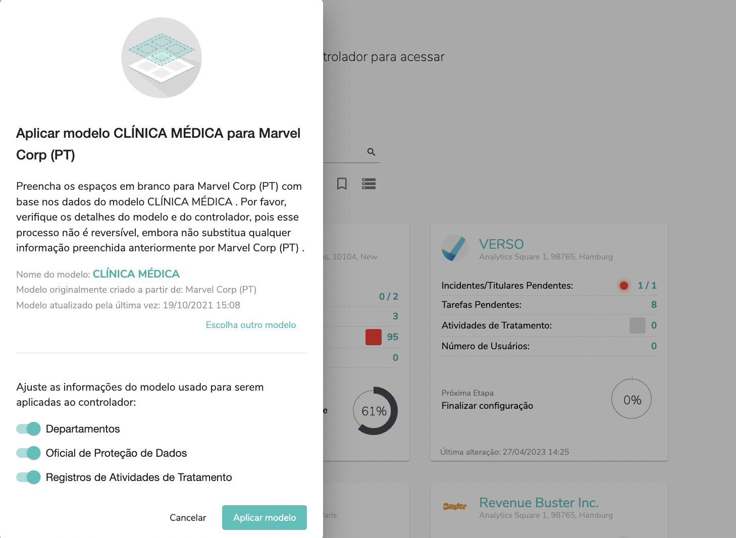 O ECOMPLY oferece modelos de documentos e processos para ajudar na gestão de privacidade e proteção de dados. Os modelos são personalizáveis e adaptáveis às necessidades de cada organização, tornando o processo de conformidade mais eficiente.