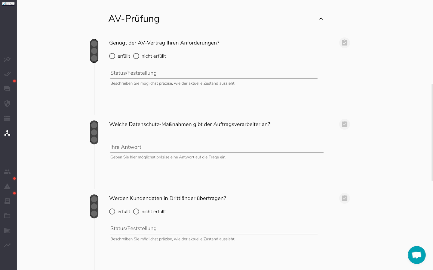 ECOMPLY hilft Ihnen dabei festzustellen, welche Auftragsverarbeitungsverträge noch fehlen - und wo sie bereits vorhanden sind. ECOMPLY sendet auf Wunsch auch eine Anfrage an den Auftragsverarbeiter, damit dieser den Vertrag direkt hochlädt.
